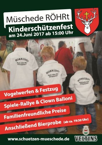 Alle Müscheder Bürgerinnen und Bürger werden herzlich gebeten, zum Kinderschützenfest im Dorf ihre Schützenfahnen zu hissen.