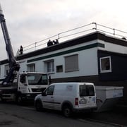 Auch Ende November und Ende Dezember gab es sichtbare Veränderungen durch die Umbaumaßnahmen, welche durch die Fördergeldmaßnahme des Landes NRW möglich waren. Vorne und hinten wurden neuen Türen eingesetzt. Dabei handelt es sich um schalldichte Fluchttüren. Und auch auf dem Dach ging's weiter. Vor Weihnachten wurden auch noch die Rolltore zwischen der kleinen und der großen Halle ausgetauscht. Eine große optische Aufwertung des gesamten Hallenkomplexes. Die Rolltore können künftig auch einzeln geöffnet werden, sodass es bei der Nutzung der Hallen ganz neue, flexiblere Möglichkeiten gibt.