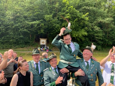 Müschede hat einen neuen Jugendkönig. Es ist Marius Schulte-Weber von der Rönkhauser Straße. Er ist der jüngere Sohn von Friedrich und Julia Schulte-Weber, die vor 11 Jahren das Müscheder Schützenvolk regiert haben. Nach einem 27-minütigem harten Kampf setze sich der 24-jährige Berufskraftfahrer und aktive Schützenbruder der Jugendkompanie mit dem 79. Schuss gegen 9 Mitbewerber und 3 Mitbewerberinnen durch. In seiner Freizeit ist der neue Jugendkönig gerne als Jagdhelfer tätig.