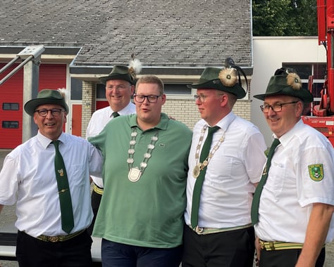 Den Hofstaat bilden Freunde und Nachbarn des neues Königspaares und natürlich Kameradinnen und Kameraden der Müscheder Feuerwehr.