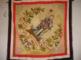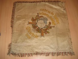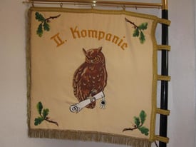 Die älteste Fahne datiert von 1888. Sie ist, im Gegensatz zu heute, nicht gestickt sondern gemalt. 1975 wurde sie außer Dienst gestellt. Der Zahn der Zeit hat sie inzwischen schwer gezeichnet. Deshalb soll sie in Kürze konserviert werden und in der Schützenhalle einen ehrenvollen Platz erhalten.